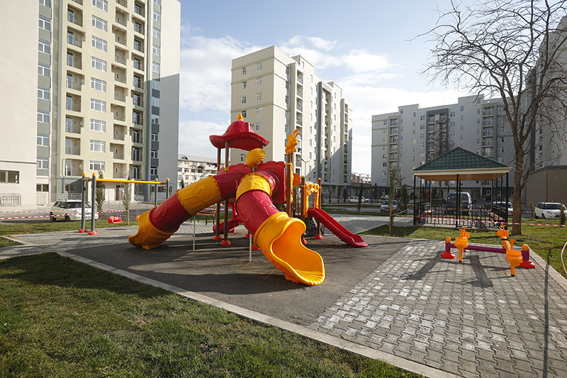 Agentliyin nümayəndəsi qeyd etdi ki, Gəncə şəhəri, Azərbaycan Bayrağı küçəsində inşa olunmuş yaşayış kompleksi 12 ədəd doqquzmərtəbəli və 6 ədəd onikimərtəbəli olmaqla 18 yaşayış binasından ibarətdir. Kompleksdə ümumilikdə 986 mənzil var. Yaşayış binaları ilə yanaşı Kompleksdə 125 yerlik uşaq bağçası, 1176 şagird yerlik orta təhsil məktəbi inşa edilmişdir.