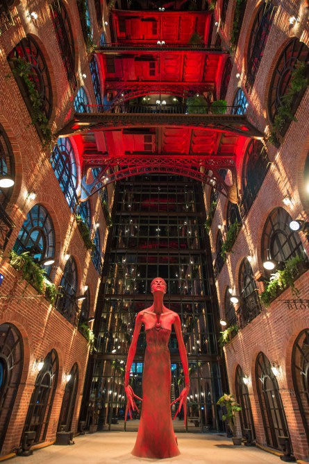 Bakı Media Mərkəzinin prezidenti Arzu Əliyeva və rəssam Rəşad Mehdiyev əsərin üzərindəki ağ örtüyü götürdülər.