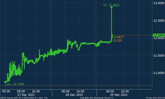 Dollar 12 lirəni aşdıDollar/TL məzənnəsi günə 11,80-dən başladıqdan sonra saat 10:04-də ani bir yüksəlişlə 12,88-i görüb.