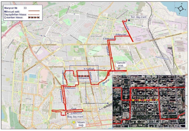 33 nömrəli müntəzəm marşrut xəttinin 7-ci mikrorayon istiqamətində hərəkət sxemimdə dəyişiklik edilərək Səməd Vurğun, Nəsib bəy Yusifbəyli küçəsi və Azadlıq prospekti ilə təşkil edilib.