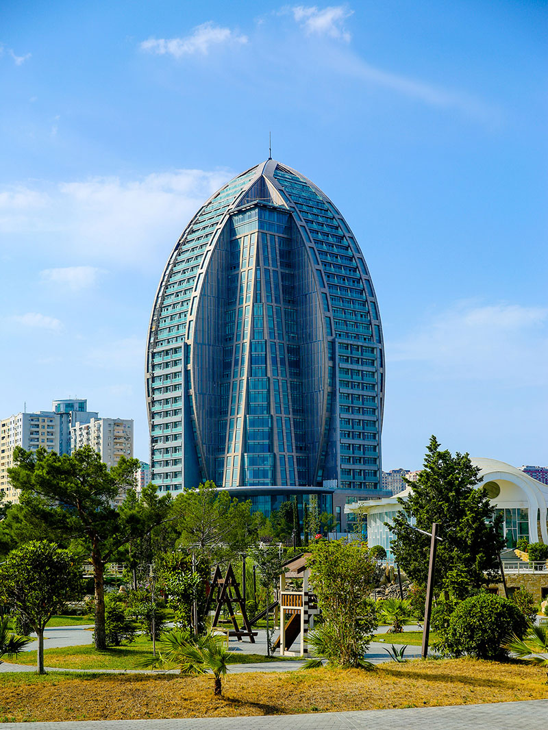 Əvvəllər “Trump Tower Baku” adı ilə tanınan və Heydər Əliyev pospektində yerləşən 33 mərtəbəli binada "The Ritz-Carlton Baku" mehmanxanası fəaliyyət göstərəcək.