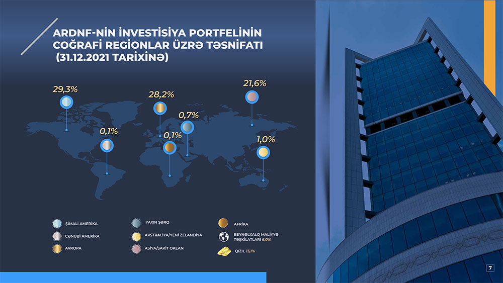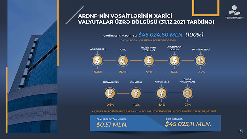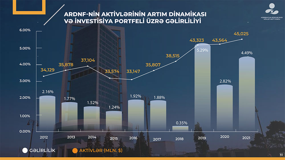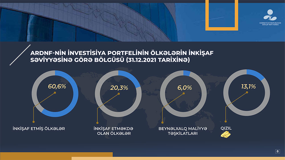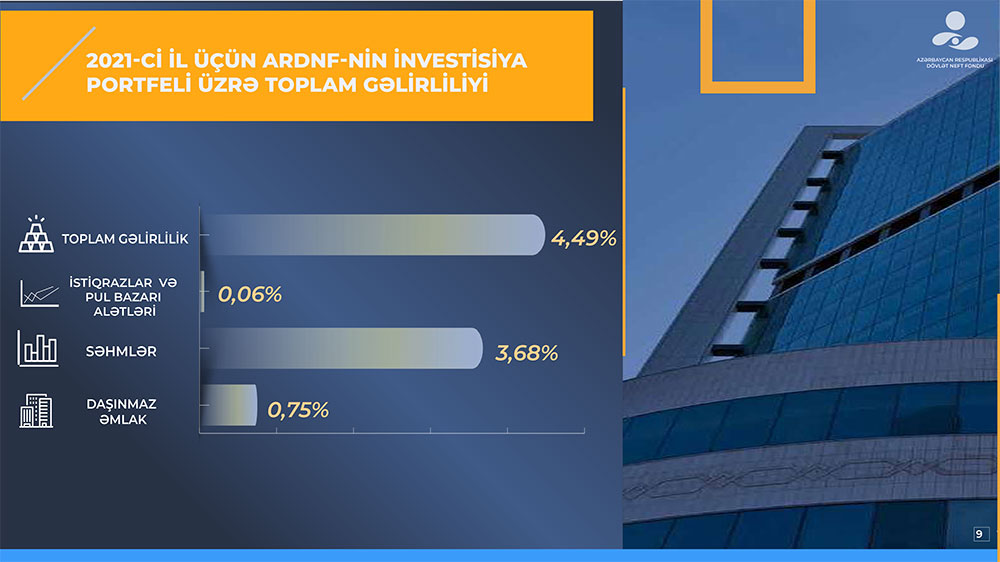 Azərbaycan Respublikası Dövlət Neft Fondu (ARDNF) 2021-ci il üzrə investisiya fəaliyyətinin yekunlarını açıqlayıb.