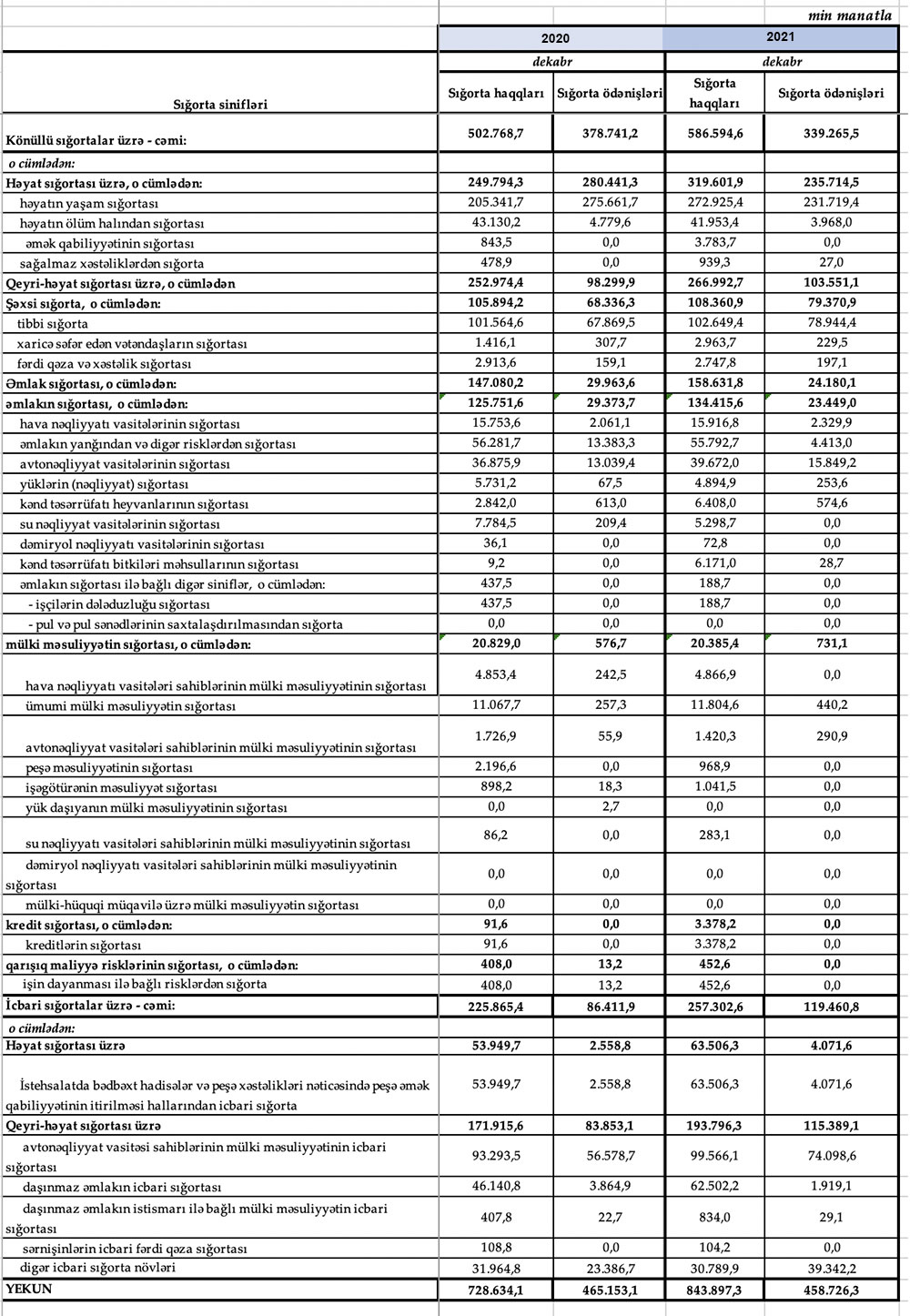 2021-ci il üzrə sığorta icmalı açıqlanıb.Mərkəzi Bank 2021-ci ildə sığortaçılar tərəfindən hesablanmış sığorta haqları və sığorta ödənişləri barədə məlumatları dərc edib.