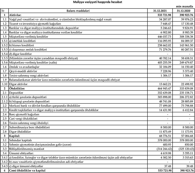 “Yelo Bank” ASC 2021-ci il üzrə maliyyə göstəricilərini açıqlayıb.