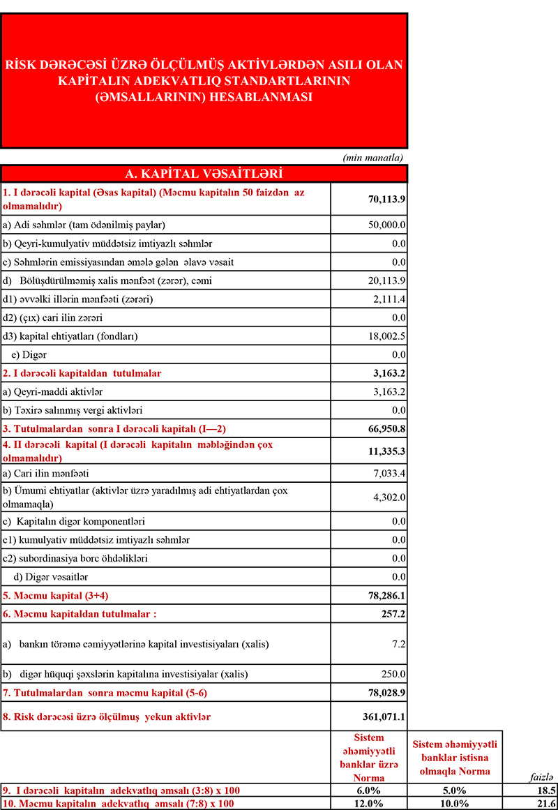 Müqayisə üçün qeyd edək ki, 2020-ci ildə “Ziraat Bank Azərbaycan”ın 5 milyon 805 min manat əməliyyat mənfəətindən ehtiyatlara 3 milyon 165 min manat ayırdığından və 527 min manat mənfəət vergisi ödədiyindən həmən ili 2 milyon 111 min manat xalis mənfəət ilə başa vurmuşdu.
