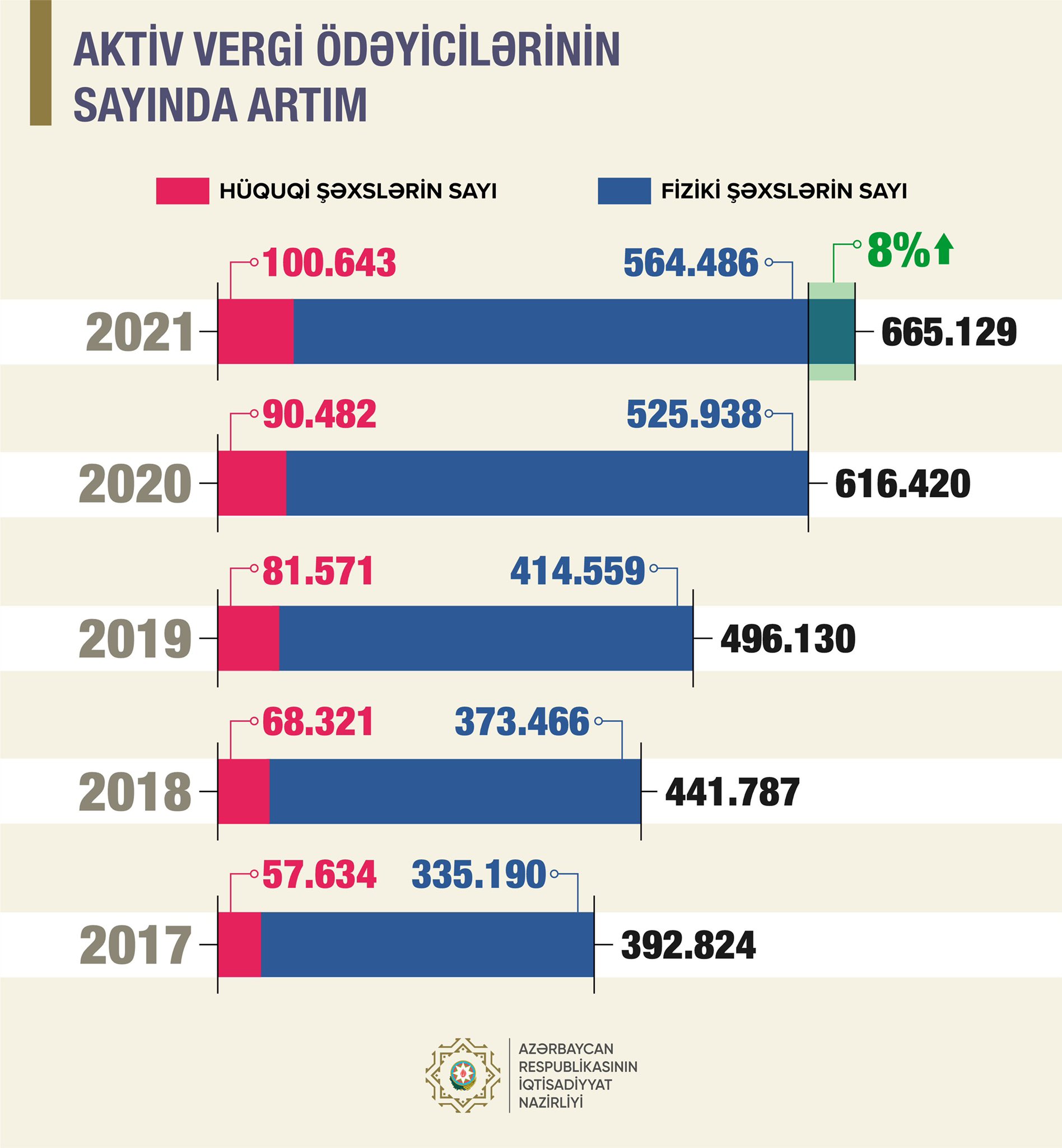 2021-ci ildə aktiv vergi ödəyicilərinin sayı 8%-dək artıb.