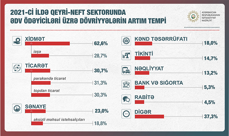 Ötən il qeyri-neft sektorunda fəaliyyət göstərən ƏDV ödəyicilərinin dövriyyələrində qeydə alınan müsbət dinamika iqtisadiyyatımızda şəffaflaşmanı və leqallaşmanı ifadə edir.