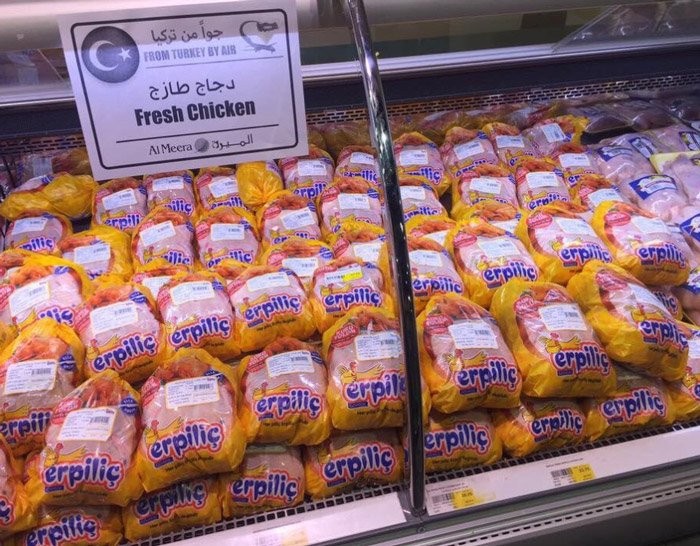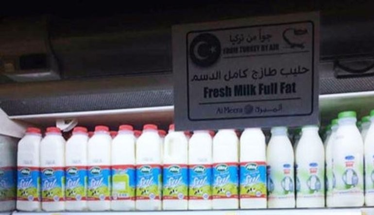 Türkiyədən yük təyyarələri ilə gətirilən toyuq, yumurta, süd və qatıq kimi məhsulları aldıqlarını sosial media hesablarından xalqa çatdıran marketlər, rəflərdəki Türk məhsullarının altına da "Türkiyədən hava yolu ilə gələn məhsullar" - yazıblar.
