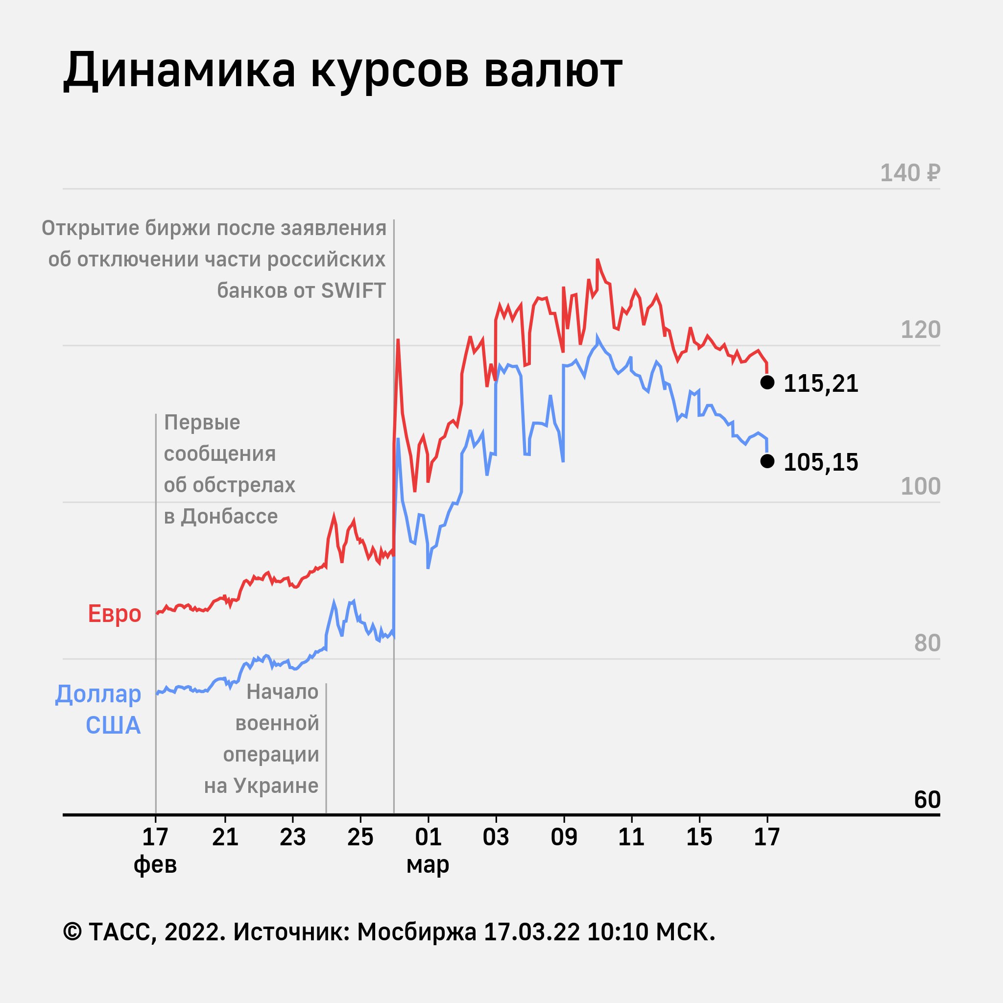 Marja Moskva birjasının məlumatına itinadən xəbər verir ki, Bakı vaxtı ilə saat 11:10-da dolların məzənnəsi 2,64% azalaraq 105,15 rubla, avronun məzənnəsi 2,11% geriləyərək 115,21 rubla düşüb.