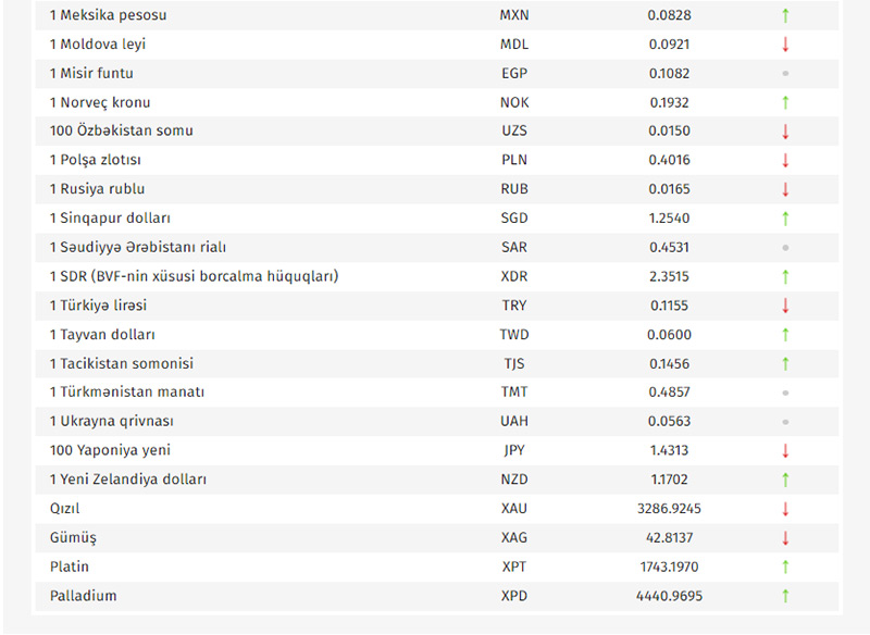Rəsmi məzənnələr açıqlandı