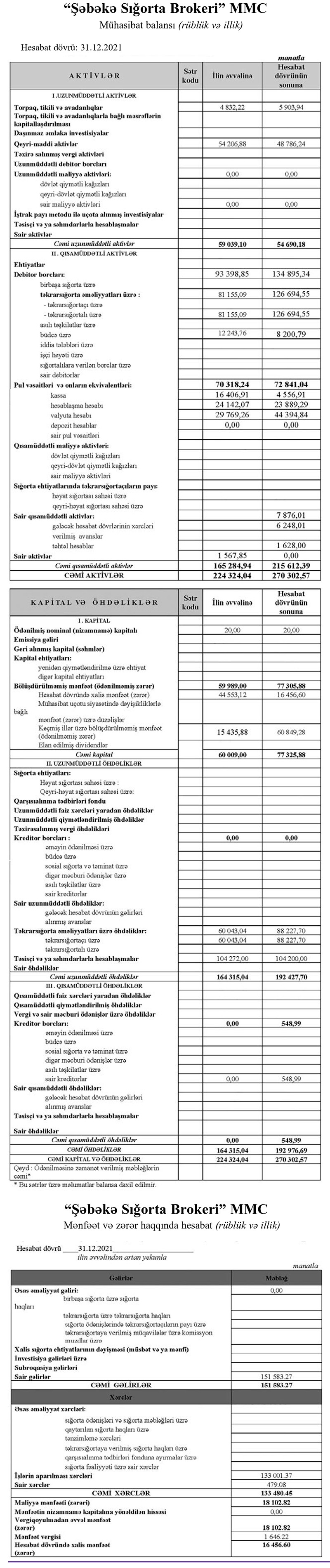 “Şəbəkə Sığorta Brokeri” MMC 2021-ci ili 16 min 456 manat xalis mənfəət ilə başa vurub. Şirkət 2020-ci ili 37 min 839 manat xalis mənfəət ilə bağlamışdı.