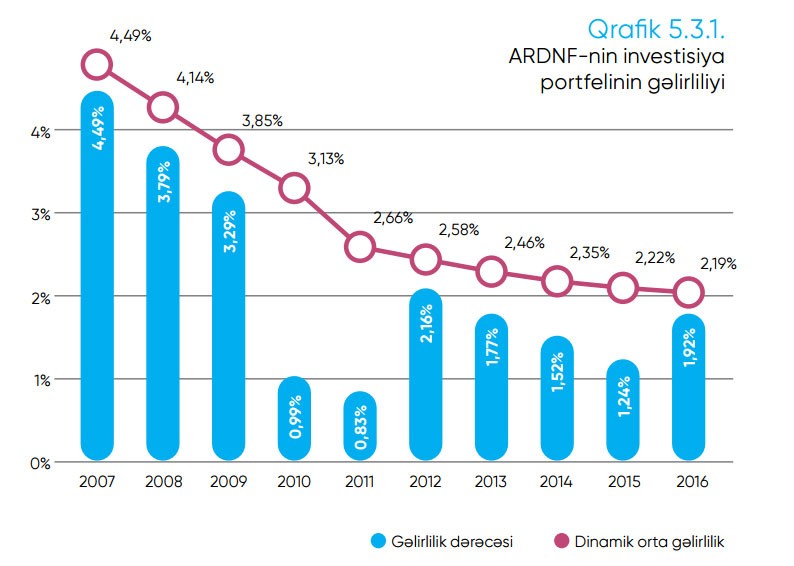 Qeyd edək ki, 2007-ci ildə Fondun investisiya portfelinin gəlirliliyi 4,49% təşkil etmişdi. Son 10 ildə gəlirlilik 2,19%, Son 5 ildə 1.72%, Son 3 ildə 1.56% təşkil edib.