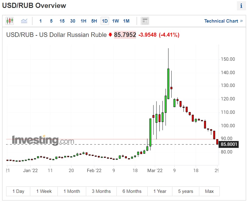 Xatırladaq ki, rublun möhkəmlənməsinə Rusiya prezidenti Vladimir Putinin qeyri-dost ölkələrdən Rusiya qazına görə ödənişi rublla almaq qərarı daha çox kömək edib. Bunun açıqlanmasından az sonra dollar və avronun məzənnələri düşməyə başlayıb.