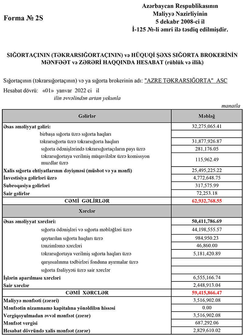 “AzRe Təkrarsığorta” ASC 2021-ci ili 2 milyon 830 min manat xalis mənfəət ilə başa vurub.