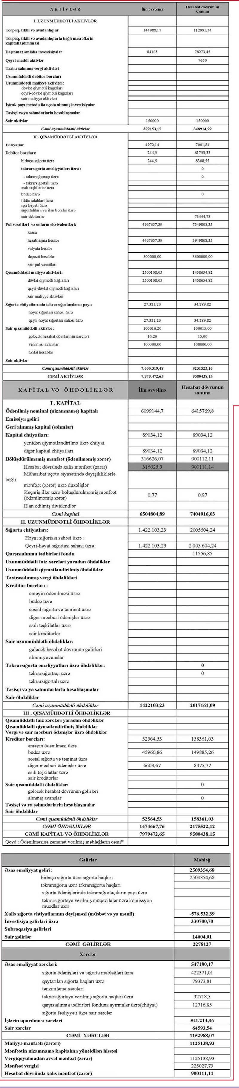 Şirkəitin sığorta ödənişləri isə 2020-ci ildəki 49 min manatdan 2021-ci ildə 422 min manata qalxıb.