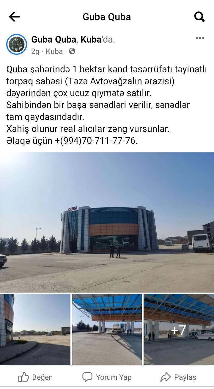 Qeyd edək ki, araşdırmasından sonra Quba Avtovağzalının satılması ilə bağlı sosial şəbəkələrdə yerləşdirilmiş elan silinib.