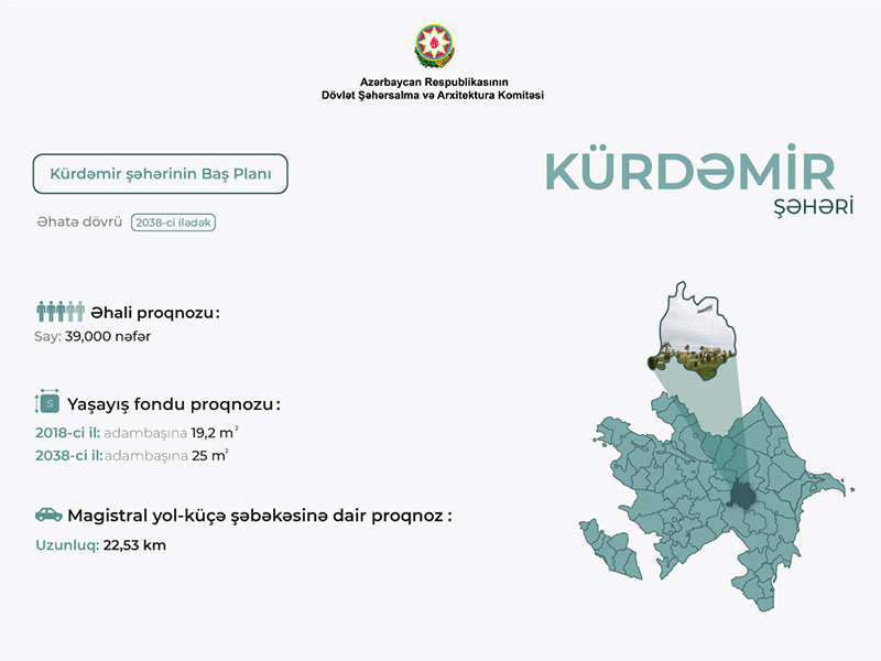 Kürdəmir şəhərinin planlaşdırma işləri yeni sənədə əsasən aparılacaqDövlət Şəhərsalma və Arxitektura Komitəsinin sifarişi ilə hazırlanmış Kürdəmir şəhərinin Baş planı Azərbaycan Respublikasının Nazirlər Kabinetinin 29 mart 2022-ci il tarixli müvafiq qərarı ilə təsdiq edilib. Kürdəmir şəhərinin sayca üçüncü Baş planı “Azərdövlətlayihə” Dövlət Baş Layihə İnstitutu tərəfindən hazırlanıb. 2038-ci ilə qədərki dövr üçün nəzərdə tutulan yeni sənəddə müasir planlaşdırma tələbləri əsas götürülərək şəhərin gələcək inkişaf istiqamətləri müəyyən edilib.