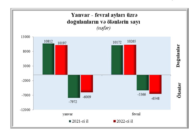 2022-ci ilin yanvar-fevral ayında Azərbaycan əhalisinin sayı 8 min 98 nəfər və ya 0,07 faiz artıb.