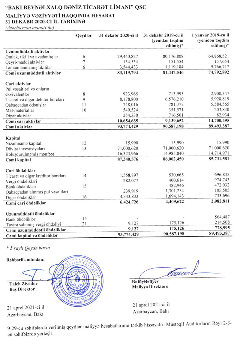 “Bakı Beynəlxalq Dəniz Ticarət Limanı” QSC (Bakı Limanı) 2020-ci ili 1 milyon 338 min manat xalis mənfəətlə başa vurub.