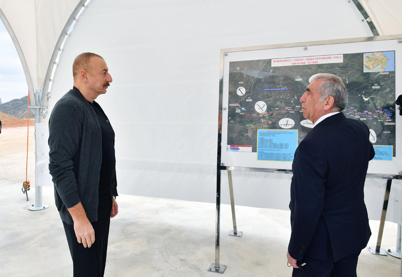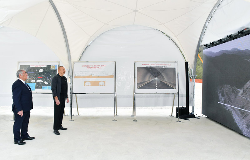 Sonra dövlətimizin başçısı Şuşa rayonunun Daşaltı kəndində Əhmədbəyli-Füzuli-Şuşa avtomobil yolunun və bu yolun üzərindəki tunellərin inşası ilə tanış olub.