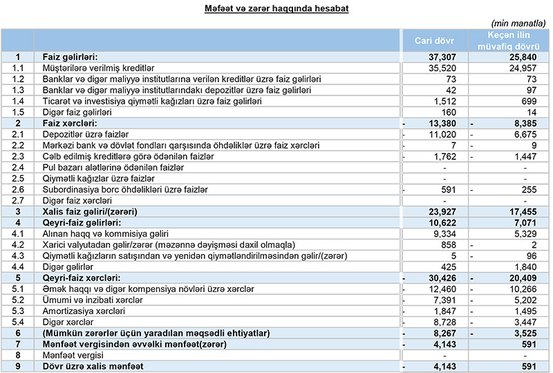 Müqayisə üçün qeyd edək ki, 2021-ci ilin yanvar-mart dövründə “Unibank”ın cəmi əməliyyat gəlirləri 32 milyon 911 min manat, cəmi əməliyyat xərcləri 28 milyon 794 min manat, gəlirlər xərcləri üstələdiyindən əməliyyat mənfəəti 4 milyon 117 min manat təşkil etmişdi. Bank mümkün zərərlər üçün yaradılan məqsədli ehtiyatlara 3 milyon 525 min manat ayırdığından ötən ilin ilk rübünü 592 min manat xalis mənfəət ilə başa vurmuşdu.
