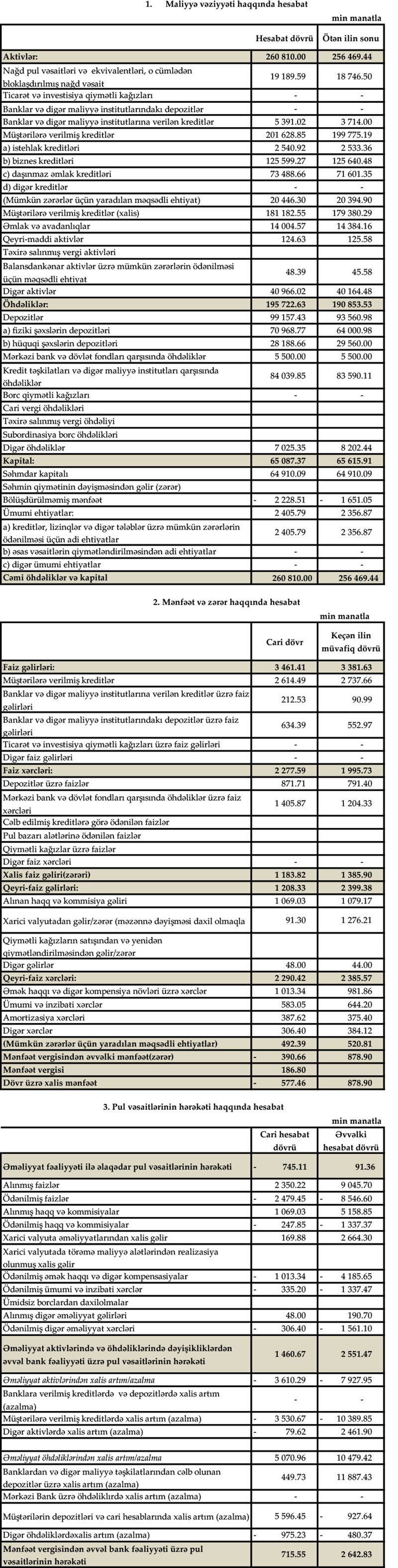 Müqayisə üçün qeyd edək ki, 2021-ci ilin yanvar-mart dövründə "GünayBank"ın cəmi əməliyyat gəlirləri 5 milyon 781 min manat, cəmi əməliyyat xərcləri 4 milyon 381 min manat, əməliyyat mənfəəti 1 milyon 400 min manat təşkil etmişdi. Bank mümkün zərərlər üçün yaradılan məqsədli ehtiyatlara 1 milyon 400 min manat ayırdığından həmin dövrü 879 min manat xalis mənfəət ilə bağlamışdı.