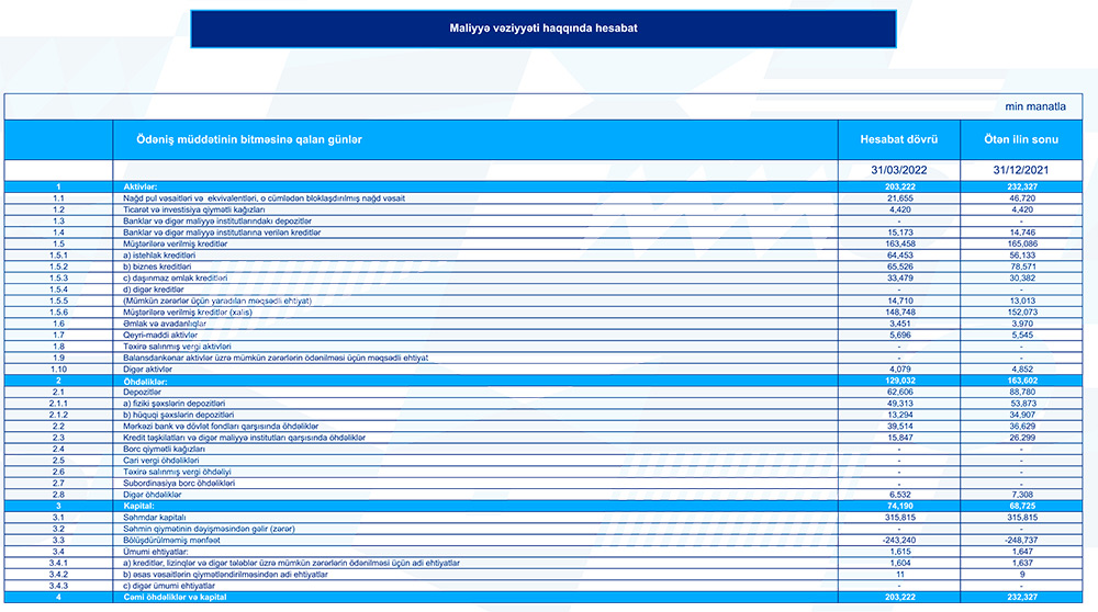 31 Mart 2022-ci il tarixində “Bank VTB Azərbaycan” 68 milyon 494 min manat məcmu kapitala malik olub.