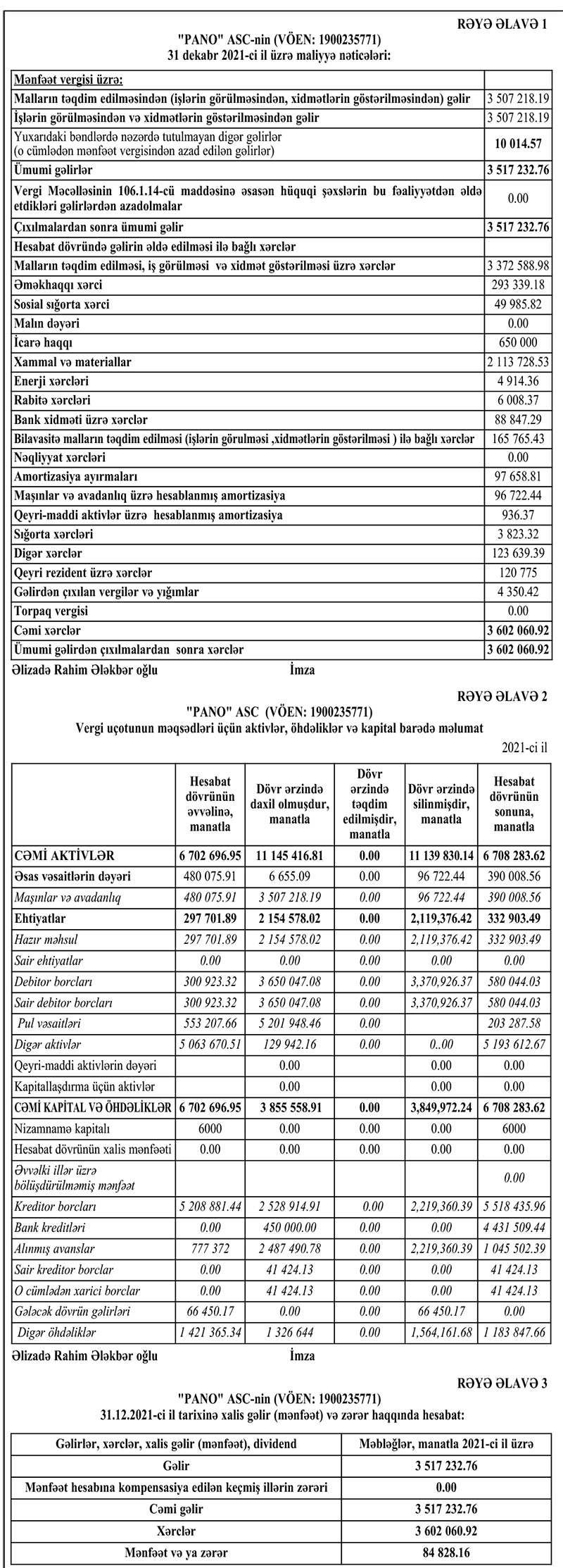 Fasad, qapı və pəncərə profillərinin istehsalı ilə məşğul olan “PANO” ASC 2021-ci ili təxminən 85 min manat xalis zərər ilə başa vurub.