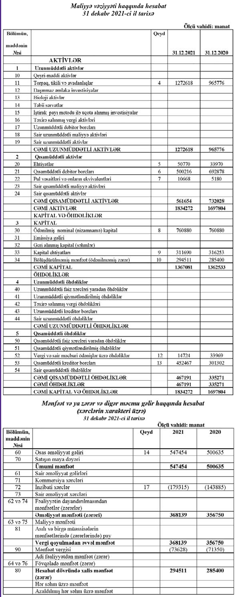 "Bakı Dəmir Beton-4" ASC 2021-ci ili 294 min 511 manat xalis mənfəət ilə başa vurub. Halbuki, ASC 2020-ci ili 285 min 400 manat xalis mənfəət ilə bağlamışdı.