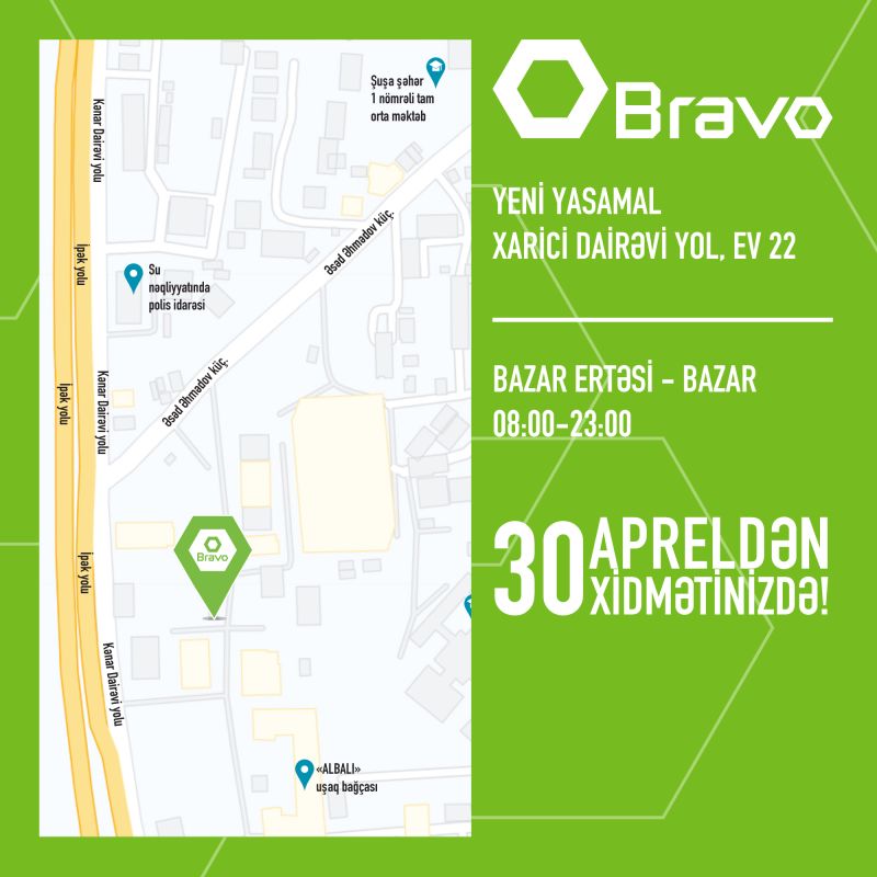 Marja.a xəbər verir ki, 30 apreldən başlayaraq daha bir Bravo supermarketi qapılarını müştərilərin üzünə açacaq.