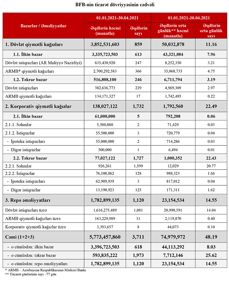 Maliyyə Nazirliyi 2021-ci ilin yanvar-aprel dövründə dövlət istiqrazlarının yerləşdirilməsi yolu ilə 635 milyon 430 min 920 manat cəlb etmişdi.