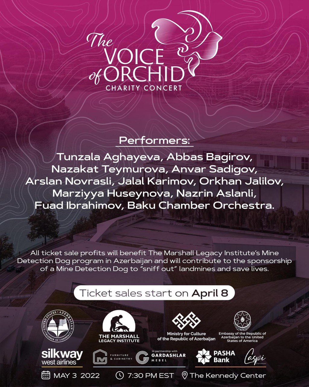 The Voice of Orchid (Xarıbülbülün səsi) adlı xeyriyyə konsertində klassik və müasir Azərbaycan musiqisinin məşhur nümunələri səsləndirilmişdir.