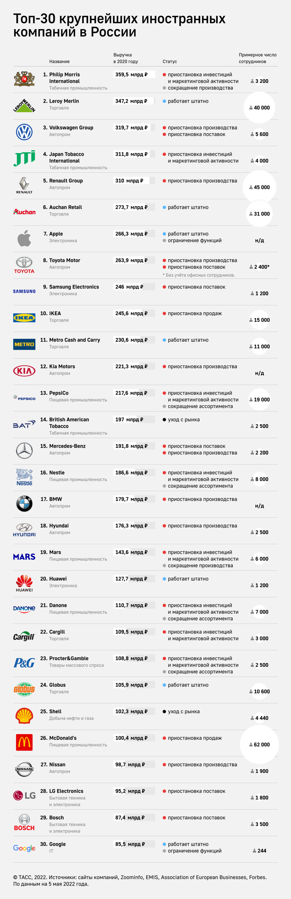 Hansı şirkətlərin adi qaydada fəaliyyətini davam etdirdiyi, hansının satışı dayandırdığı və ya bazarı tamamilə Rusiyanı tərk etdiyi barədə ətraflı məlumat üçün TASS-ın infoqrafikasına baxa biləriniz.