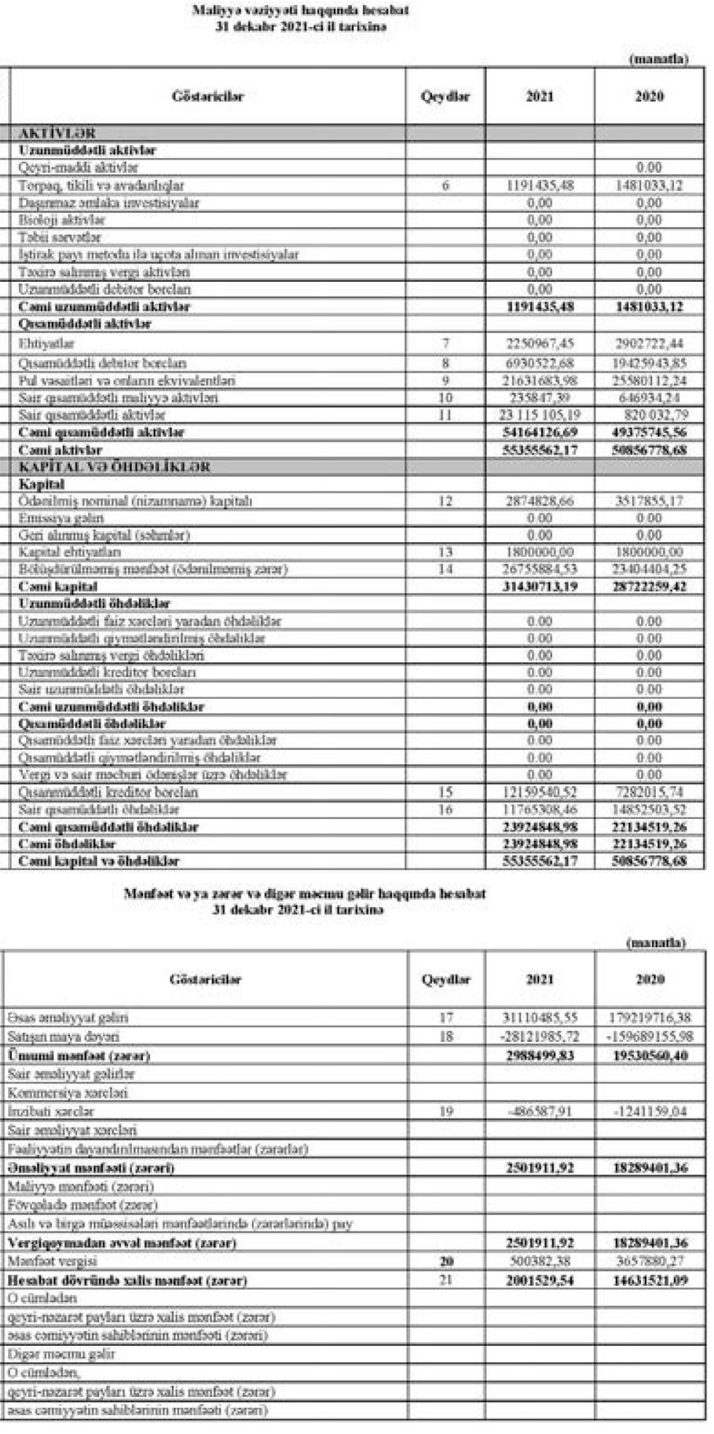 “Azəraqrartikinti” ASC 2021-ci ili 2 milyon manat xalis mənfəət ilə başa vurub. ASC 2020-ci ili 14 milyon 631 min manat xalis mənfəət ilə bağlamışdı. Beləliklə, 2020-ci illə müqayisədə 2021-ci ildə “Azəraqrartikinti”nin xalis mənfəəti 7,3 dəfə azalıb. Xalis mənfəətin azalması gəlirlərin kəskin azalmasından qaynaqlanır.