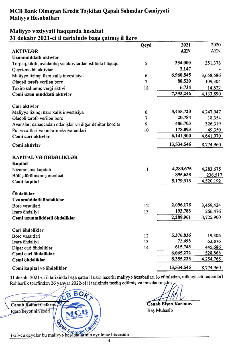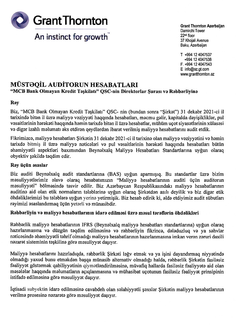 “MCB Bank Olmayan Kredit Təşkilatı” QSC-nin maliyyə göstəriciləri ilə daha ətraflı mcb.az saytında tanış ola bilərsiniz.