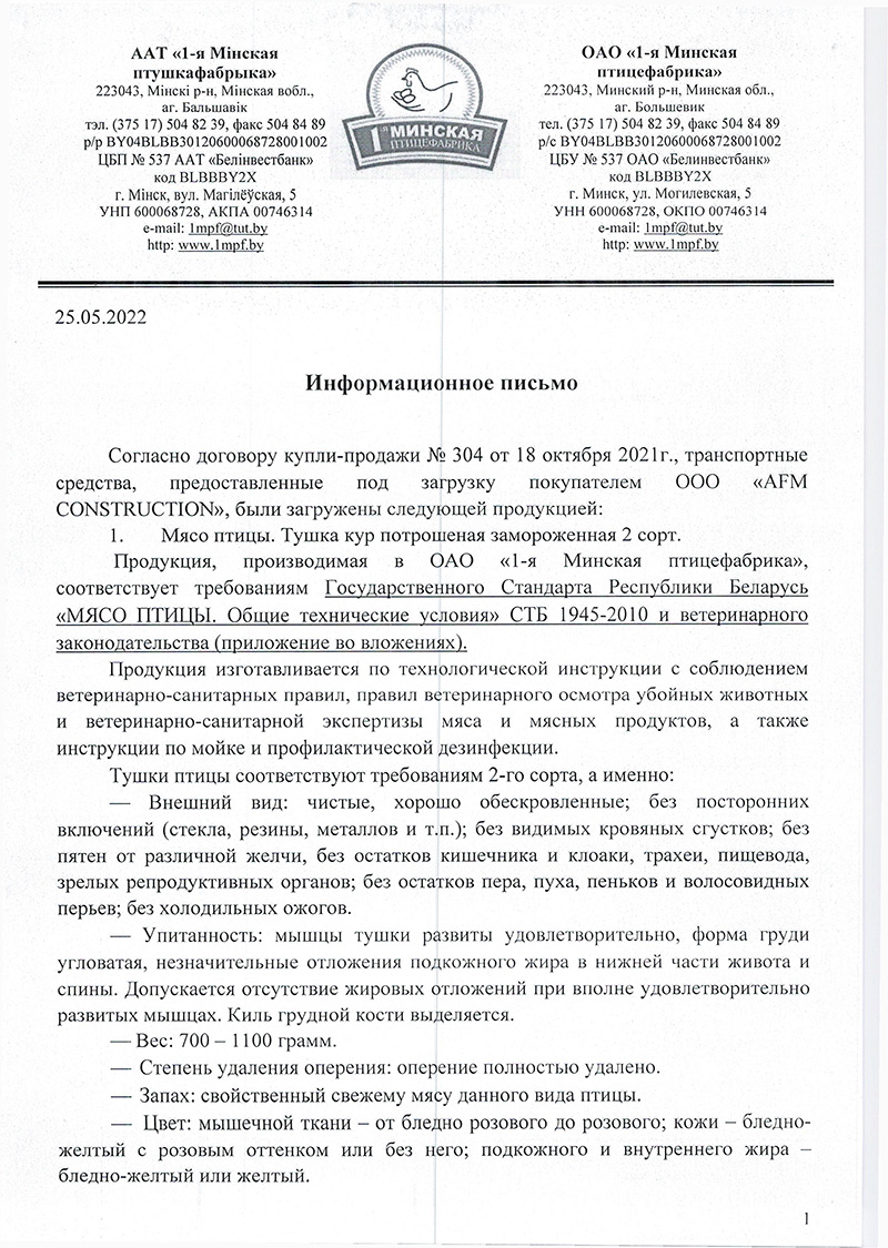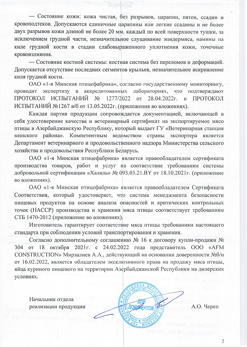 “AFM” MMC Belarusdan aldığımız video görüntülər və sənədlər əssında “kənd toyuğu” adından istifadə üçün Azərbaycanın müvafiq qurumundan da icazə alıb”.