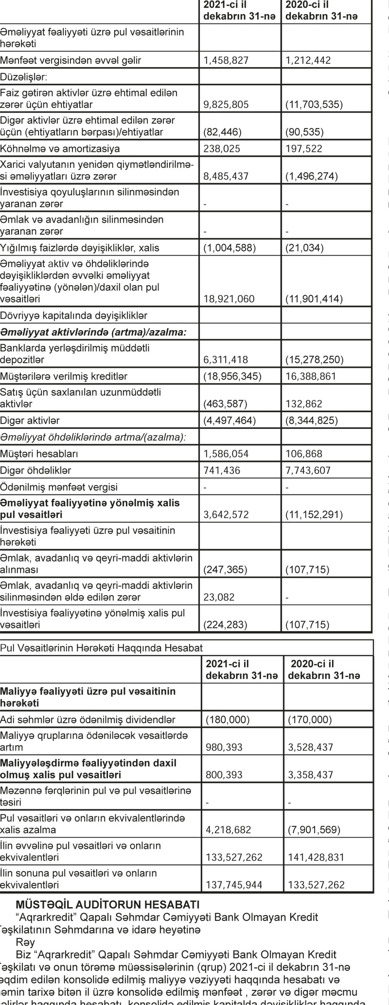 “Aqrarkredit” QSC Bank Olmayan Kredit Təşkilatı 2021-ci ili 1 milyon 191 min 229 manat xalis mənfəət ilə başa vurub. Halbuki, təşkilat 2020-ci ili 866 min 689 manat xalis zərər ilə bağlamışdı. Beləliklə, 2020-ci illə müqayisədə 2021-ci ildə “Aqrarkredit”in xalis mənfəəti 37,4% artıb.
