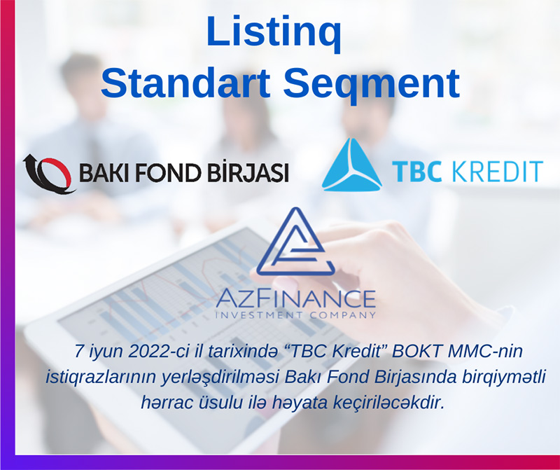 2 iyun 2022-ci il tarixində Bakı Fond Birjasının (BFB) Listinq Komitəsinin qərarı ilə “TBC Kredit” BOKT MMC-nin ümumi dəyəri 1 milyon manat olan istiqrazları standart bazar seqmentində listinqə daxil edilib.