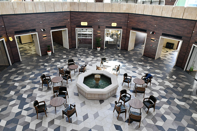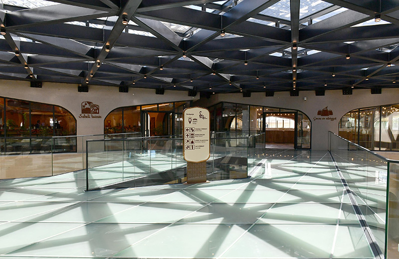 Kompleksin əsas atributu olan gümbəzlər müxtəlif iaşə obyektlərinin təyinatına görə dizayn edilib. Bazara gələcək alıcıların rahatlığını təmin etmək üçün zərgərlik, əl işləri yarmarkaları, “Sandıqca” incəsənət nümunələrinin satışı bölməsi, “Tamaşa”, qəlyanaltılar, kafe və restoranlar, “Sehrli bazar”, emalatxanalar və sair bölmələrin hər biri ayrıca gümbəz və hissələrdə cəmləşdirilib.