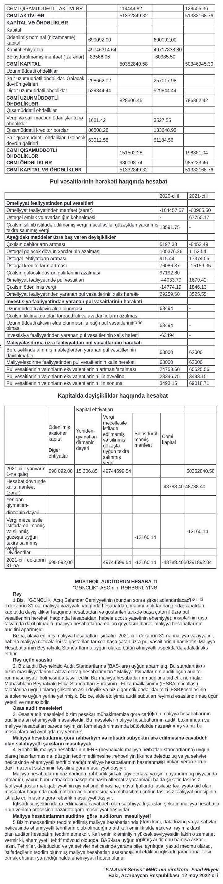 31 Dekabr 2021-ci il tarixində "Gənclik" ASC 51 milyon 332 min manat cəmi aktivlərə malik olub.