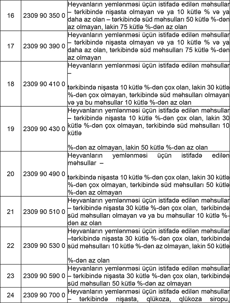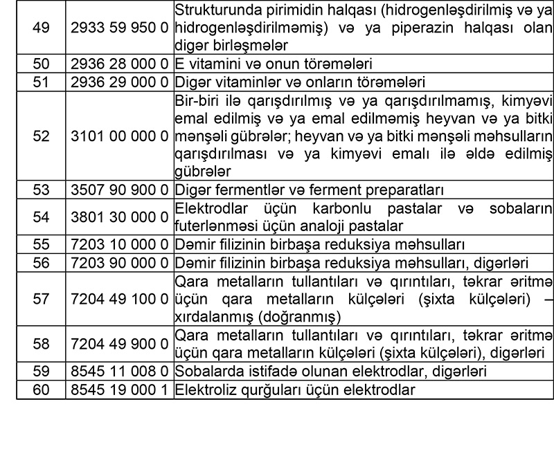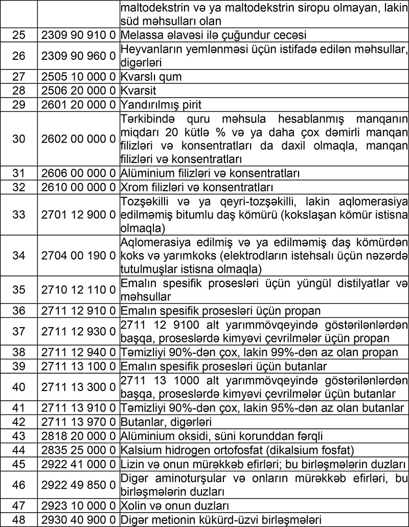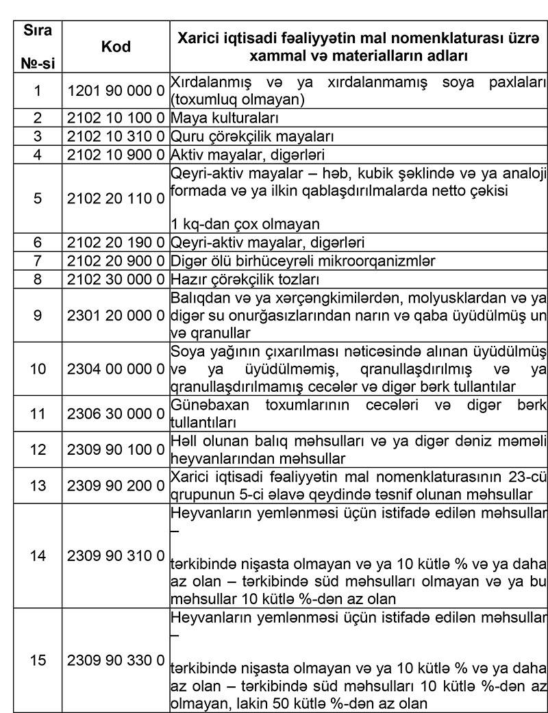 İdxalı əlavə dəyər vergisindən azad edilən xammal və materialların SİYAHISI