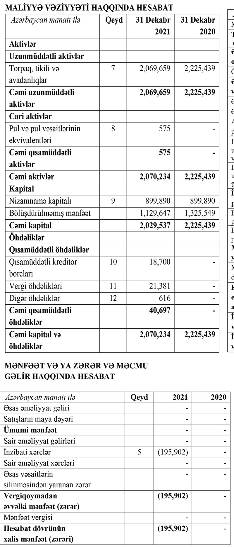 “Bakı Elektroştamp” ASC 2021-ci ili 195 min 902 manat xalis zərər ilə başa vurub.