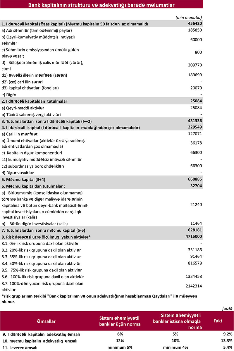 Qeyd edək ki, 2021-ci ilin ilk 6 ayı ərzində "Kapital Bank"ın cəmi əməliyyat gəlirləri 363 milyon 774 min manat, cəmi əməliyyat xərcləri 183 milyon 456 min manat, əməliyyat mənfəəti 180 milyon 318 min manat təşkil etmişdi.