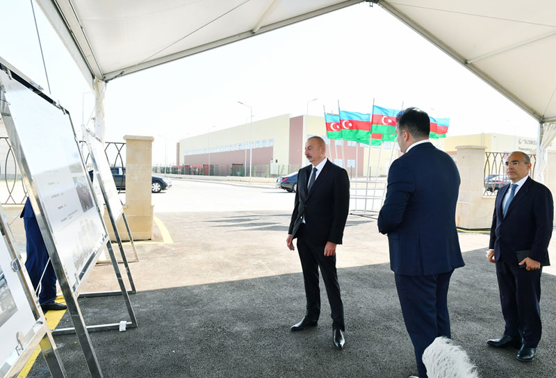 Marja xəbər verir ki, dövlətimizin başçısı əvvəlcə Sumqayıt Kimya Sənaye Parkında yeni istehsal müəssisələrinin açılış və təməlqoyma mərasimlərində iştirak edib.