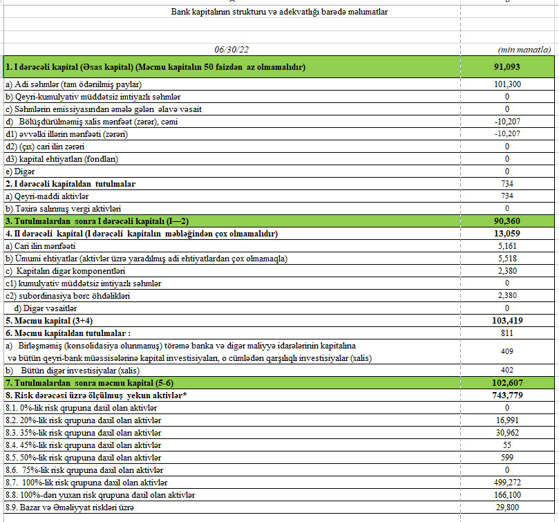 Müqayisə üçün qeyd edək ki, 2021-ci ilin yanvar-iyun dövründə “Rabitəbank” ASC-ın cəmi əməliyyat gəlirləri 38 milyon 903 min manat, cəmi əməliyyat xərcləri 26 milyon 923 min manat, əməliyyat mənfəəti 11 milyon 980 min manat, mümkün zərərlər üçün yaradılan məqsədli ehtiyatlara ayırma 7 milyon 294 min manat, xalis mənfəəti 4 milyon 685 min manat təşkil etmişdi.