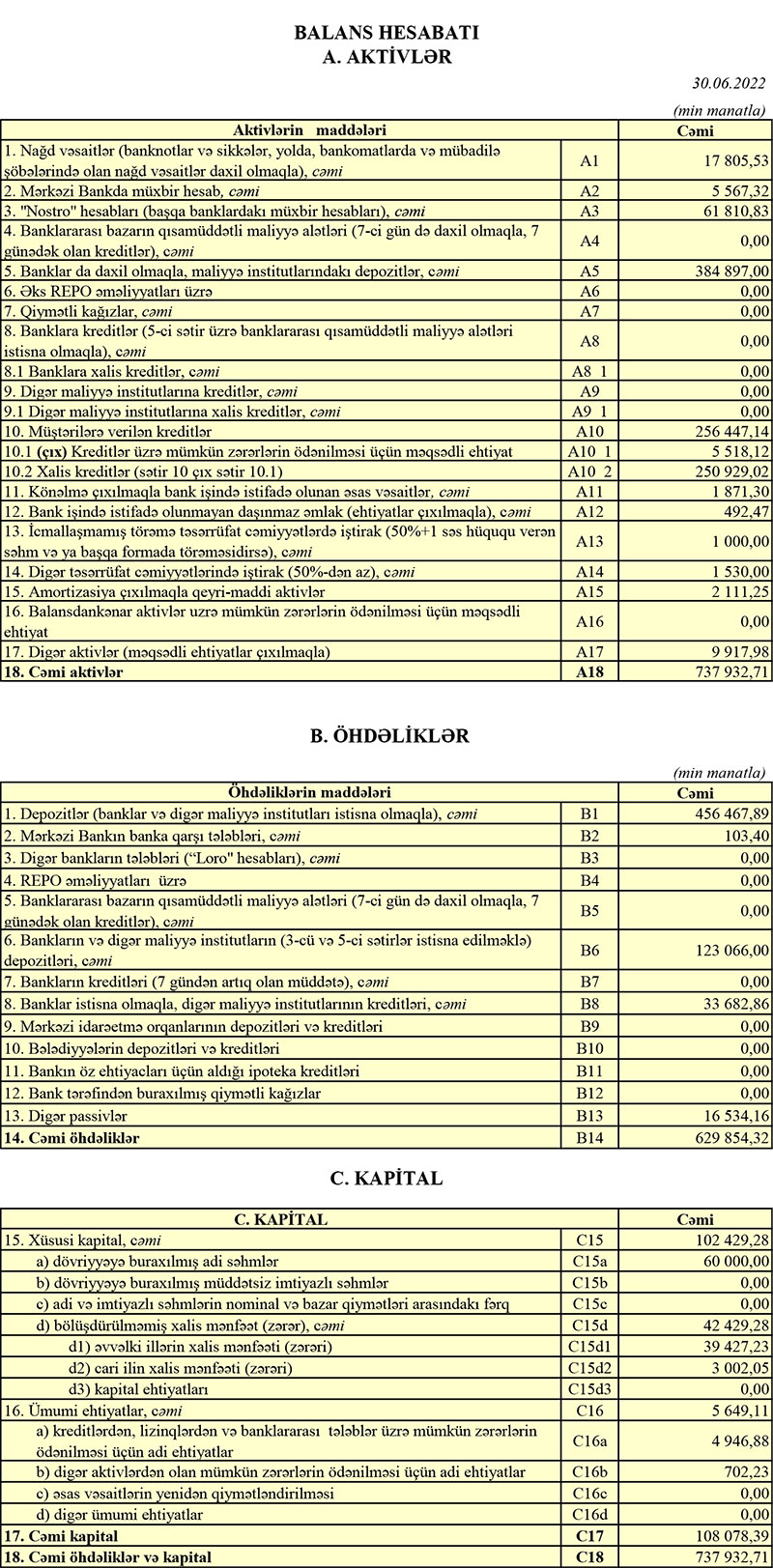 Qeyd edək ki, 2021-ci ilin yanvar-iyun dövründə "Azərbaycan Sənaye Bankı" ASC-nin cəmi əməliyyat gəlirləri 17 milyon 324 min manat, cəmi əməliyyat xərcləri 15 milyon 445 min manat, əməliyyat mənfəəti 1 milyon 879 min manat, aktivlər üzrə mümkün zərərlərin ödənilməsi üçün xüsusi ehtiyata ayırma 483 min manat, ödənilmiş məmfəət vergisi 283 min manat təşkil etmişdi.