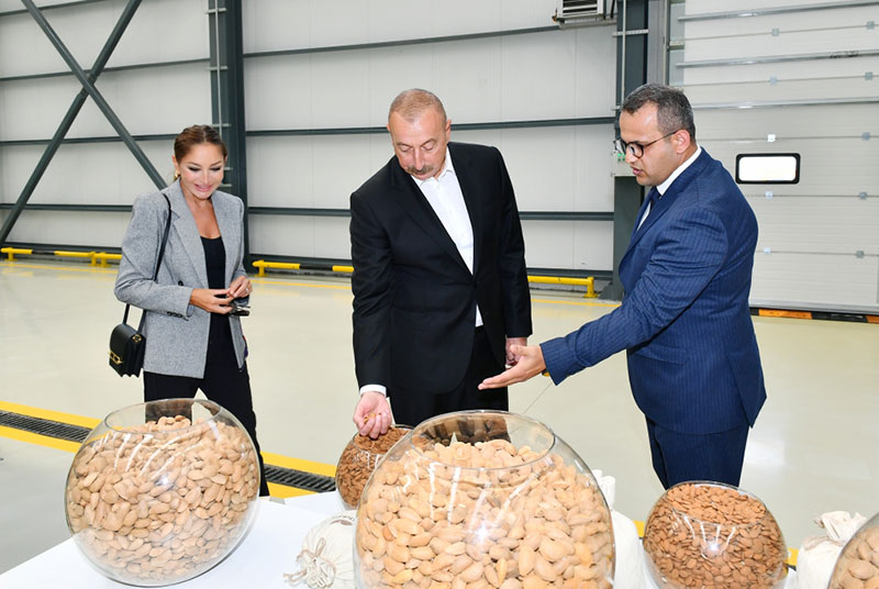 Bildirilib ki, Prezident İlham Əliyevin və birinci xanım Mehriban Əliyevanın fəaliyyəti ilə tanış olduqları “Grand-Agro İnvitro” Məhdud Məsuliyyətli Cəmiyyətinin müəssisəsi və “Azbadam” Məhdud Məsuliyyətli Cəmiyyətinin açılışı olan badam emalı zavodu məhz qeyri-neft sektoru və kənd təsərrüfatının inkişaf konsepsiyasının uğurla reallaşdırılmasının nəticəsidir.