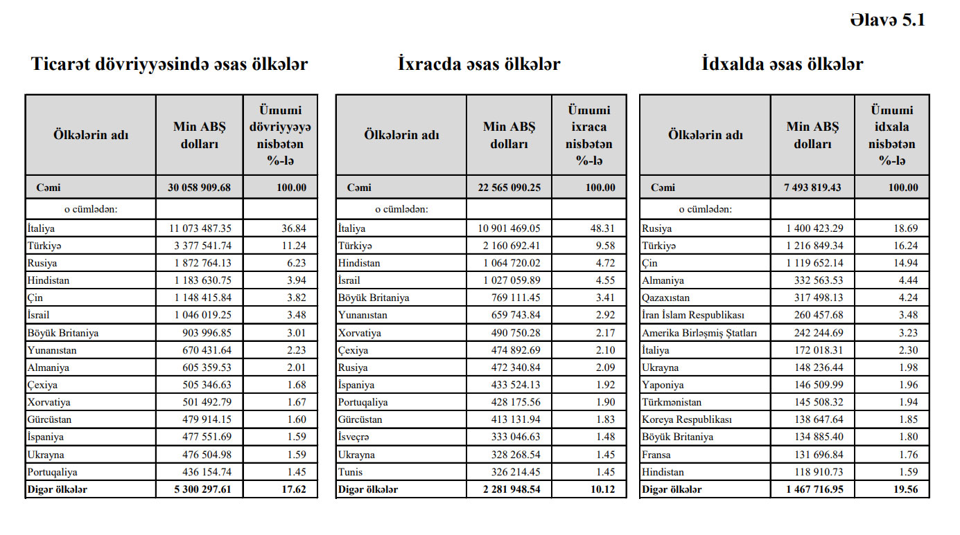 Bu dövrdə Azərbaycanın bütün xarici ticarət dövriyyəsinin 6,23%-i Rusiya ilə ticarət əməliyyatlarının payına düşüb.