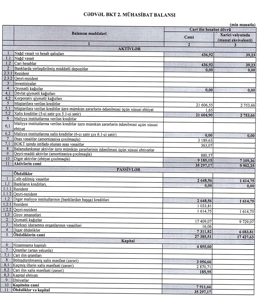 30 İyun 2022-ci il tarixində "FİNOKO" 35 milyon 297 min manat cəmi aktivlərə malik olub (30 iyun 2021-ci il tarixində 33 milyon 105 milyon manat).