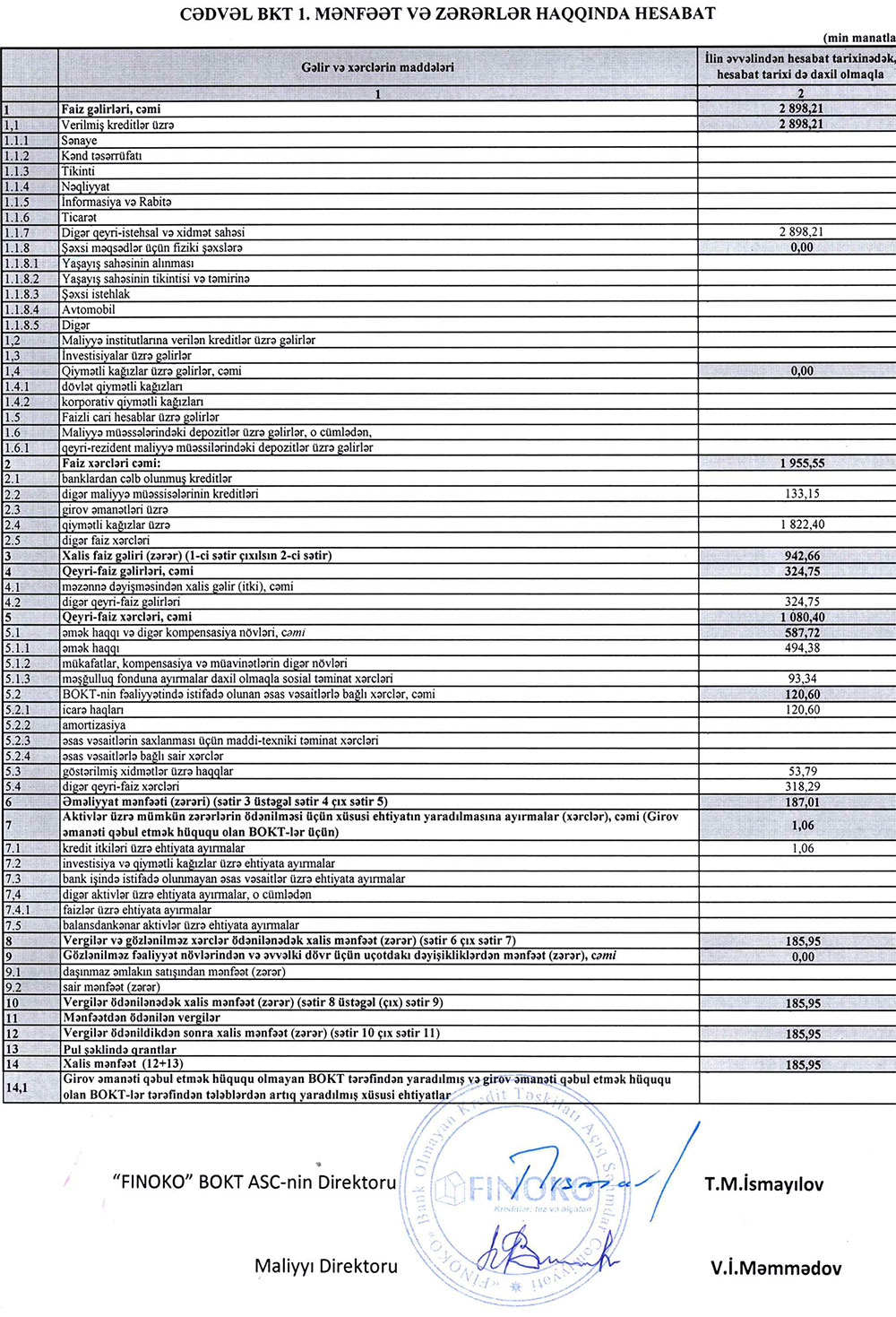 BOKT "FİNOKO" ASC 2022-ciilin birinci yarısını (yanvar-iyun dövrünü) 186 min manat xalis mənfəət ilə başa vurub. Təşkilat örən ilin eyni dövrünü 160 min manat xalis mənfəət ilə bağlamışdı.